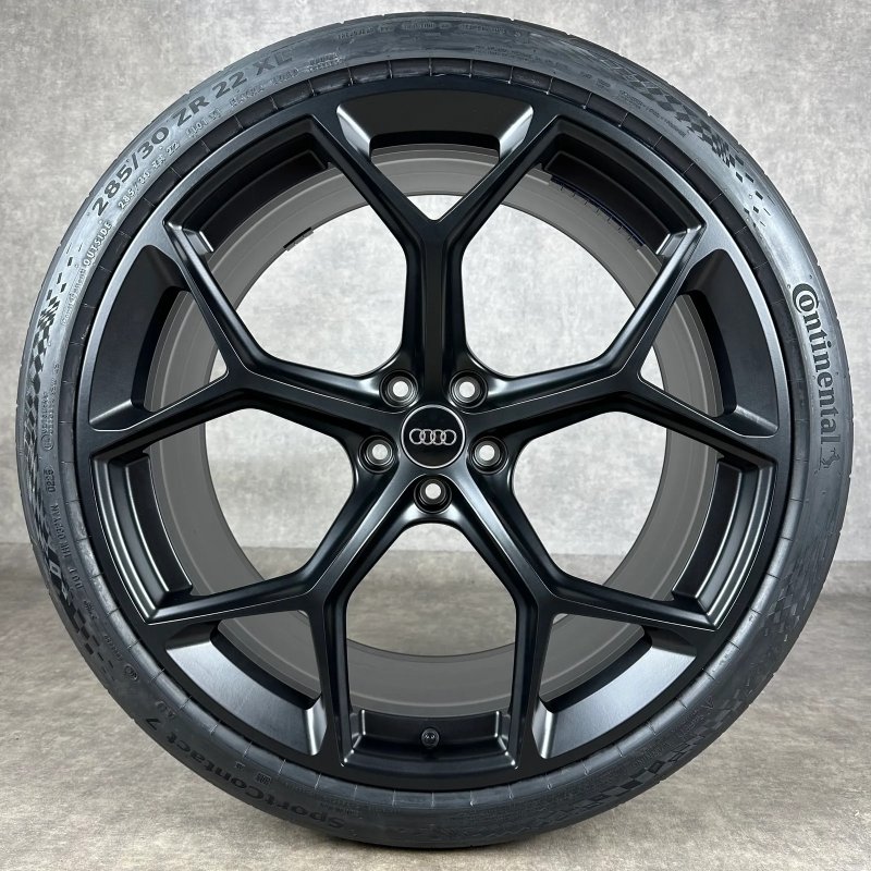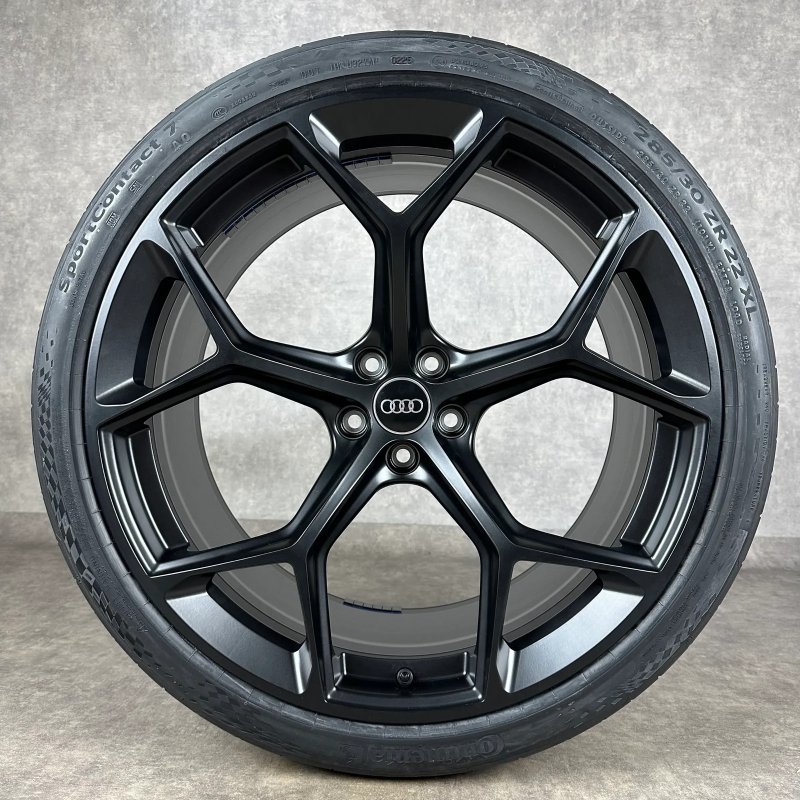 4x Original AUDI 22" 5-V-Speichen Felgen / Sommerkompletträder schwarz matt Dimension: 10,5Jx22" ET19 Teilenummer: 4K0601025BM 285/30 R22 101Y Continental SportContact 7 AO, neu Angeboten werden 4x Original AUDI 5-V-Speichen Sommer-Kompletträder