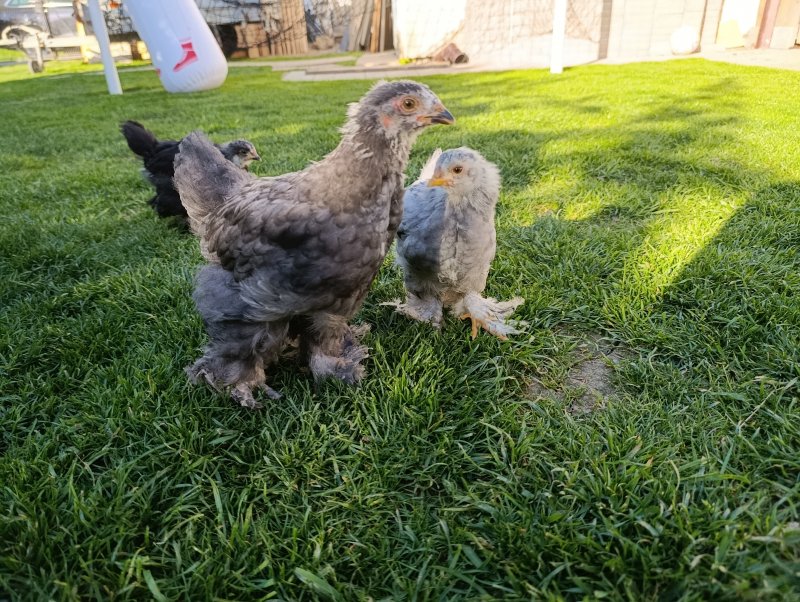 5 Stk. Brahma Kücken von mitte März 2026. Farben: 1x schwarz, 1x schwarz- weiß gescheckt, 1x silber und 2x blau. 18€/Stk. bei Abnahme von allen 5 80€